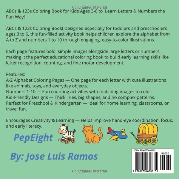 Alphabet and Numbers Coloring Book: 46 Images for Ages 3 to 6