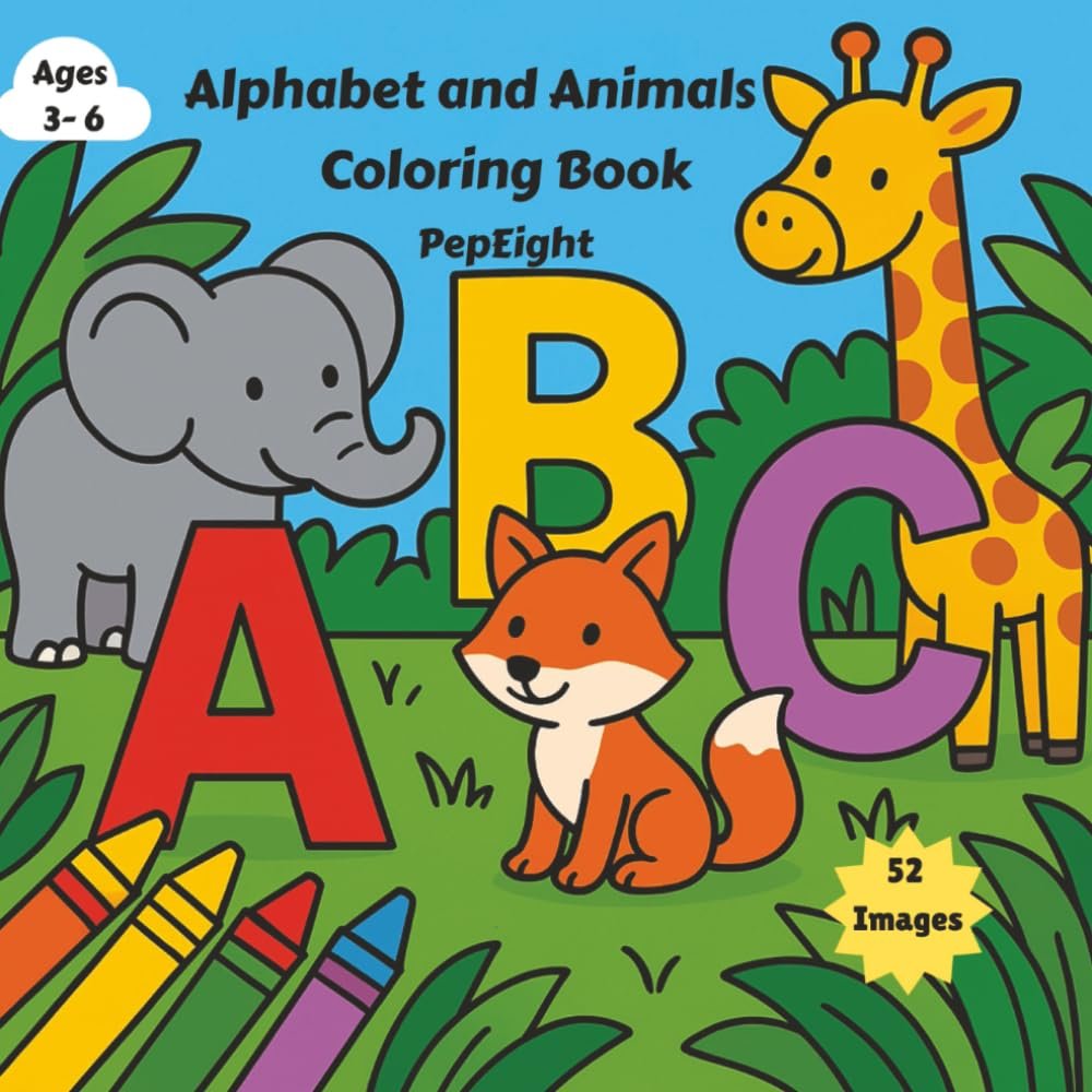 Alphabet and Animals Coloring Book: 52 Images to Color